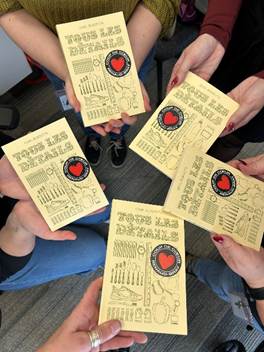 Le mois dernier, nous devions lire Tous les détails, et, belle surprise, il est arrivé chez moi le 23 décembre. J’avais fait une commande de groupe, pour simplifier les choses pour les filles. Je leur ai donc remis leur copie le 24, au bureau. Un peu comme un cadeau de Noël!
