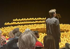 La scène en soi est magnifique, illuminée par des centaines de chandelles, disons-le artificielles, sinon, allô le risque d’incendie! Et entre les Saisons, nous avions droit à une explication de chacun des tableaux à venir, accompagné d’un poème, que j’ai retracé sur les Zinternets.